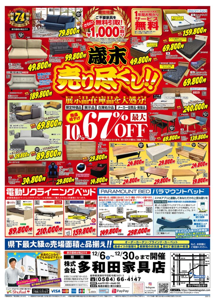 歳末売り尽くし!! 2025.12.05 新着情報 SCROLL ALL PHOTOS 歳末売り尽くし!! 2025.12.05 新着情報 12/6(土)〜12/30(火)まで歳末売り尽くしを開催! 店内最大67%OFF!展示品・在庫品を大処分! この機会に是非当店へご来店くださいませ! BACK TO LIST NEW ITEM新商品 新商品はこちらからご覧可能です。ご不明な点はお気軽にお尋ね下さい。 VIEW MORE