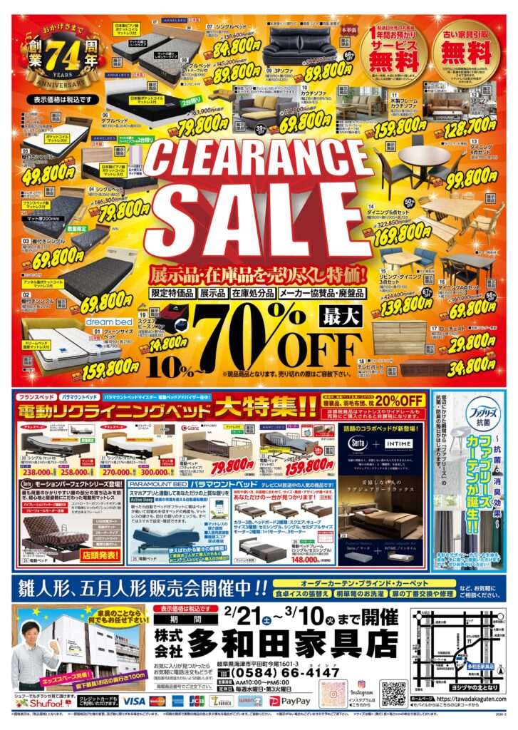 「クリアランスセール」 展示品・在庫品を売り尽くし特価!