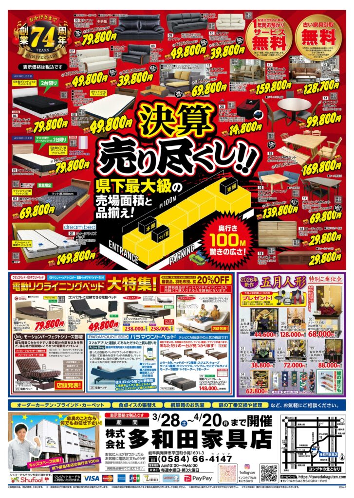 お待たせしました!!「決算売り尽くし!!」を開催します。今がお買い求めの大チャンス!!